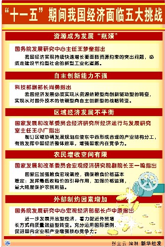 新华网北京10月25日电 综合分析经济社会发展的国内环境,“十一五”时期经济社会保持快速健康发展有诸多有利条件。 从需求方面看,国内需求还有很大的拓展空间。一方面,现阶段我国基础设施建设和城市建设的大规模展开,将使投资需求持续扩大;另一方面,随着城乡居民收入不断增长,将推动住宅、汽车、电信、旅游、教育、医疗等消费持续扩大。国内市场巨大潜力的不断释放,将成为推动经济增长的强大发动机。 从供给方面看,劳动力、资本、技术装备等生产要素都具备支撑经济较快发展的条件。劳动力资源极为丰富,成本较低,具有发展劳动密集型产业的比较优势;随着人力资本不断增加和劳动力素质逐步提高,将为产业结构升级,加快发展技术密集型产业准备条件。国民储蓄率一直保持很高水平。外国投资者看好中国市场,外商投资仍会持续增加。经济发展的资金供给比较充裕。经过多年建设和发展,我国科技、教育和工业已具有相当规模和基础,交通、通信等基础设施不断完善,也为进一步发展创造了良好条件。 从保障条件方面看,我国已经形成了建设中国特色社会主义的基本理论、基本路线、基本纲领、基本经验和一整套行之有效的方针政策。我国政治、社会继续保持稳定,改革全面推进,社会主义市场经济体制和政治、科技、教育等体制不断完善,将为经济社会发展提供良好环境和有力保障。 另一方面,也必须看到,我国未来发展也面临不少制约因素和困难。“十一五”时期我们面临的矛盾和问题有以下几个方面: (一)这几年经济运行中的不稳定不健康因素虽有所抑制,但尚未根本消除。低水平重复建设还有可能反弹,通货膨胀压力仍然存在,一些行业生产能力过剩问题正在显现。特别是城乡结构、区域结构、产业结构等结构性矛盾和粗放型经济增长方式,是制约“十一五”时期发展的重要因素。 (二)经济社会发展中的一些长期性问题。首先是“三农”问题,全面建设小康社会的重点和难点都在于解决“三农”问题。城镇就业压力增大是另一个难题。今后随着产业结构优化升级,资本技术密集型产业比重上升,经济增长的就业弹性系数将下降,劳动力供求的结构性矛盾也将更为突出。同时,60岁以上老龄人口的比重已超过10%,今后还会继续增加,养老等社会保障的压力不断加大 (三)经济社会发展中的瓶颈制约和深层次矛盾。主要是:⑴资源瓶颈。我国的耕地、淡水、森林、石油以及主要矿产资源人均占有量均低于世界平均水平,能源、资源利用效率明显低于世界先进水平,加之经济发展正处于重化工业加快发展的阶段,能源和其他资源的消费强度加大,导致经济发展和资源、环境的矛盾加剧。⑵科技瓶颈。我国原始创新能力和集成创新能力不强,缺乏核心技术和自主知识产权,关键技术装备长期依赖进口。⑶人才瓶颈。我国人才的总量、结构和素质不适应发展的需要,尤其是高水平科技研发人才和高级管理人才短缺,已成为我国提高自主创新能力和国际竞争力的严重制约。⑷我国社会主义市场经济体制虽已初步建立,但还不完善。生产力发展仍然存在体制机制障碍。这是经济社会矛盾中诸多突出矛盾和问题的深层次根源。同时改革进入攻坚阶段,触及深层次矛盾和利益关系调整,妥善处理各种社会矛盾、兼顾各方面利益关系的任务更加艰巨和复杂。(完)